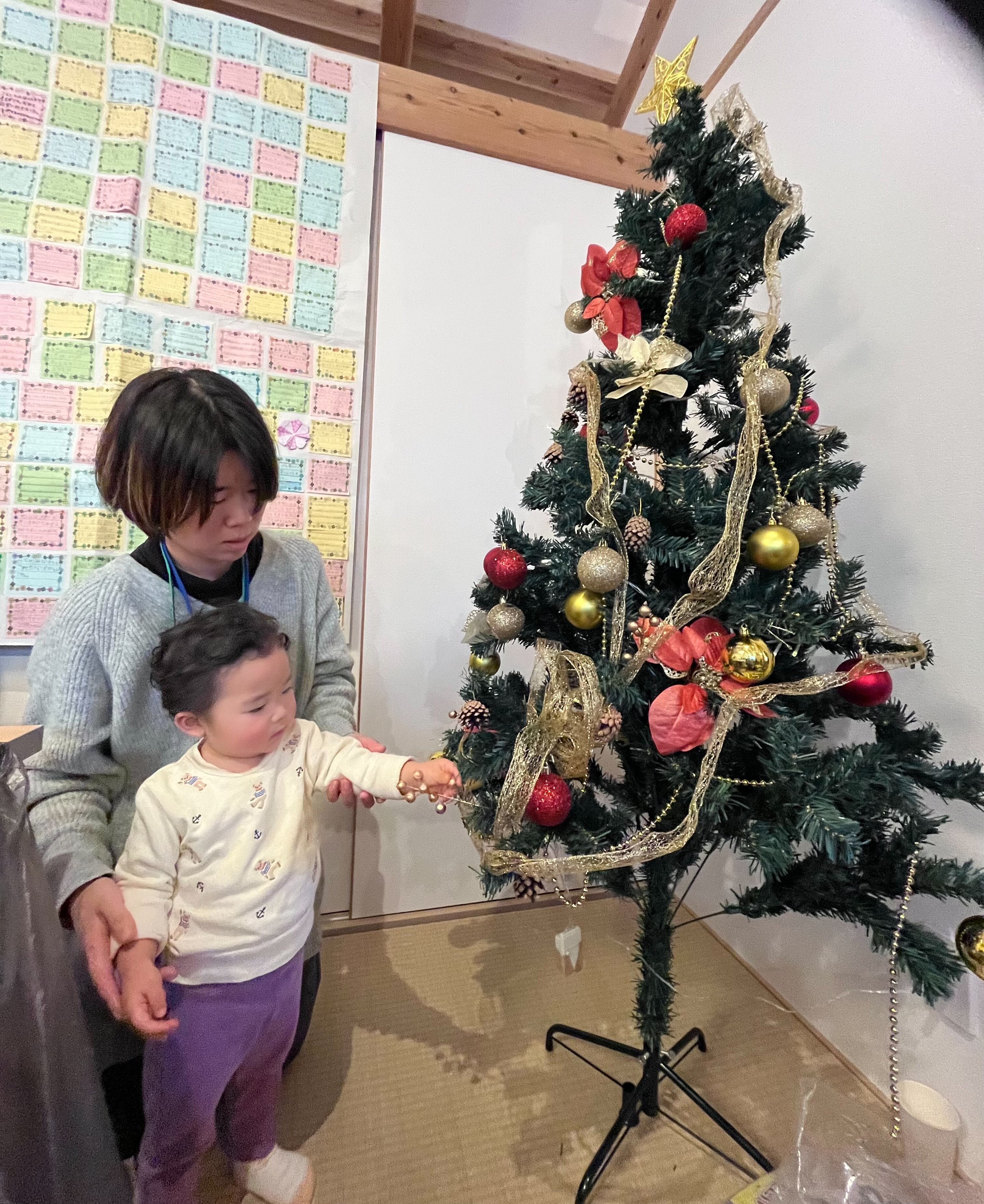 大きなクリスマスツリーを集会所に寄贈し、子どもたちに飾りつけをしてもらいました。