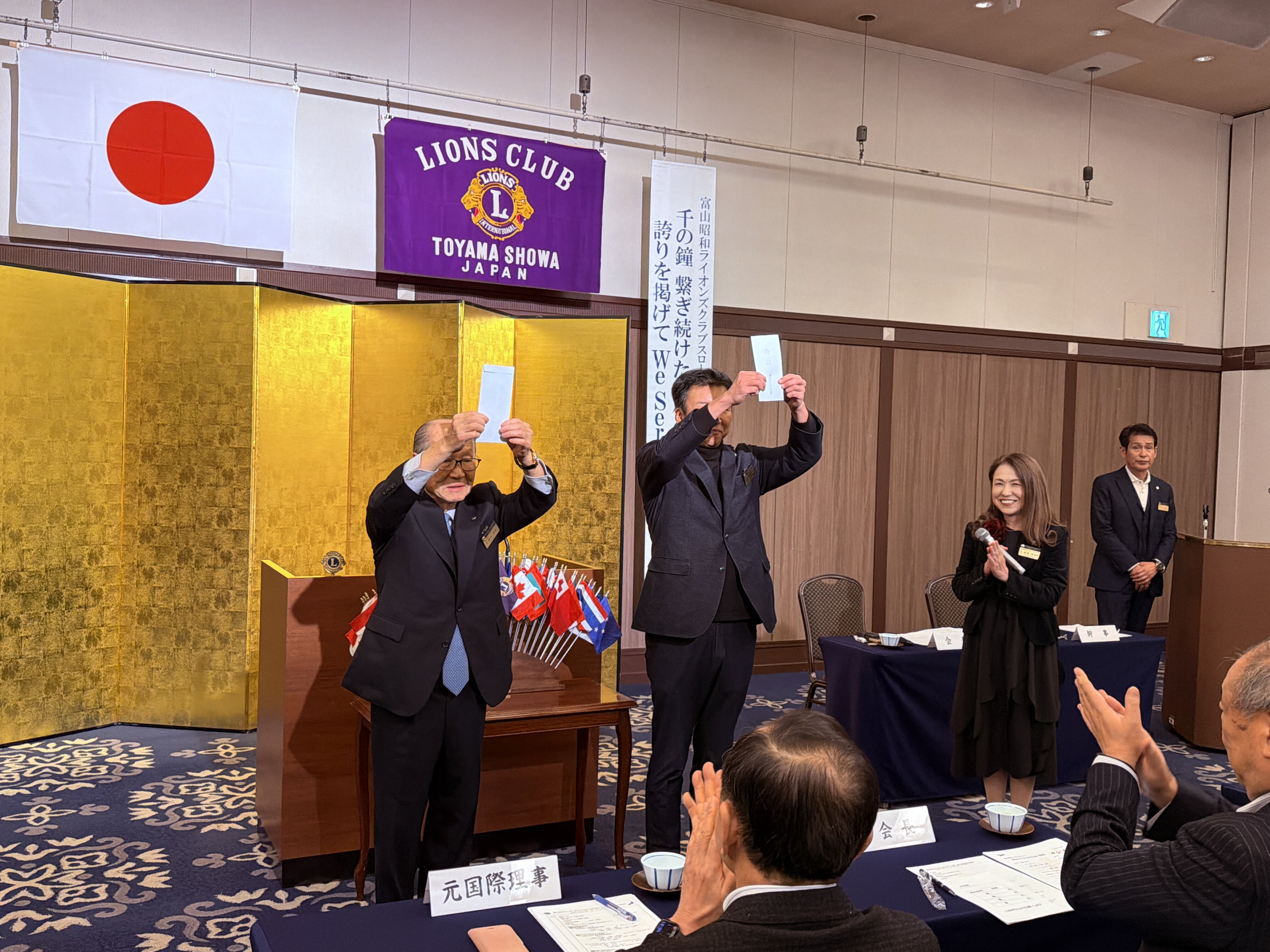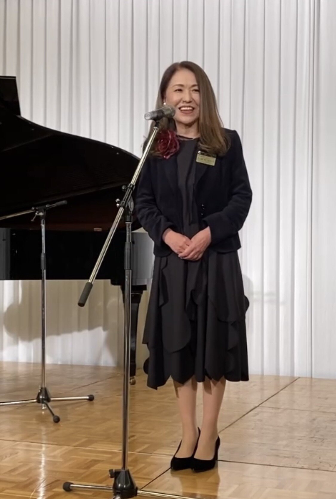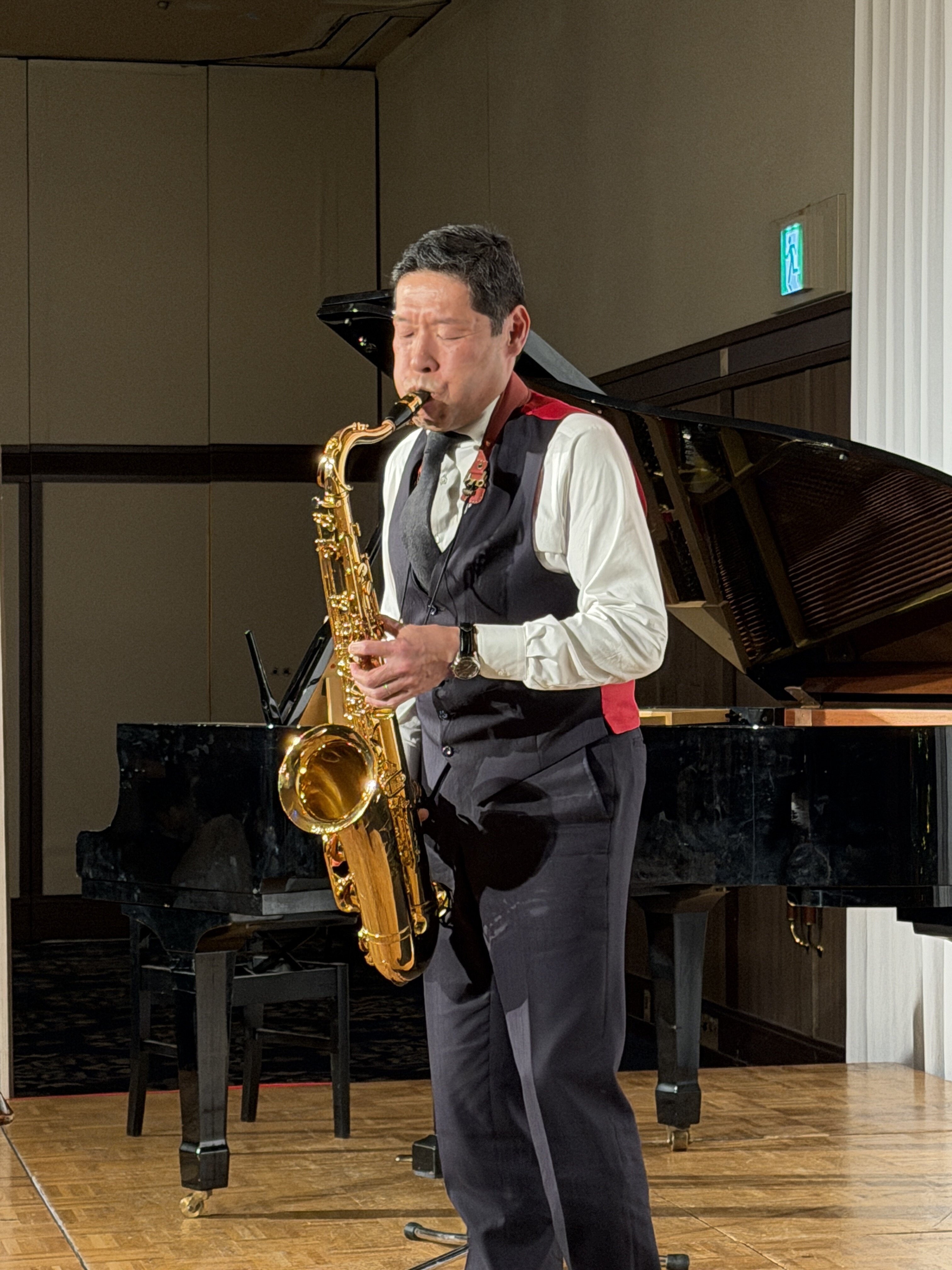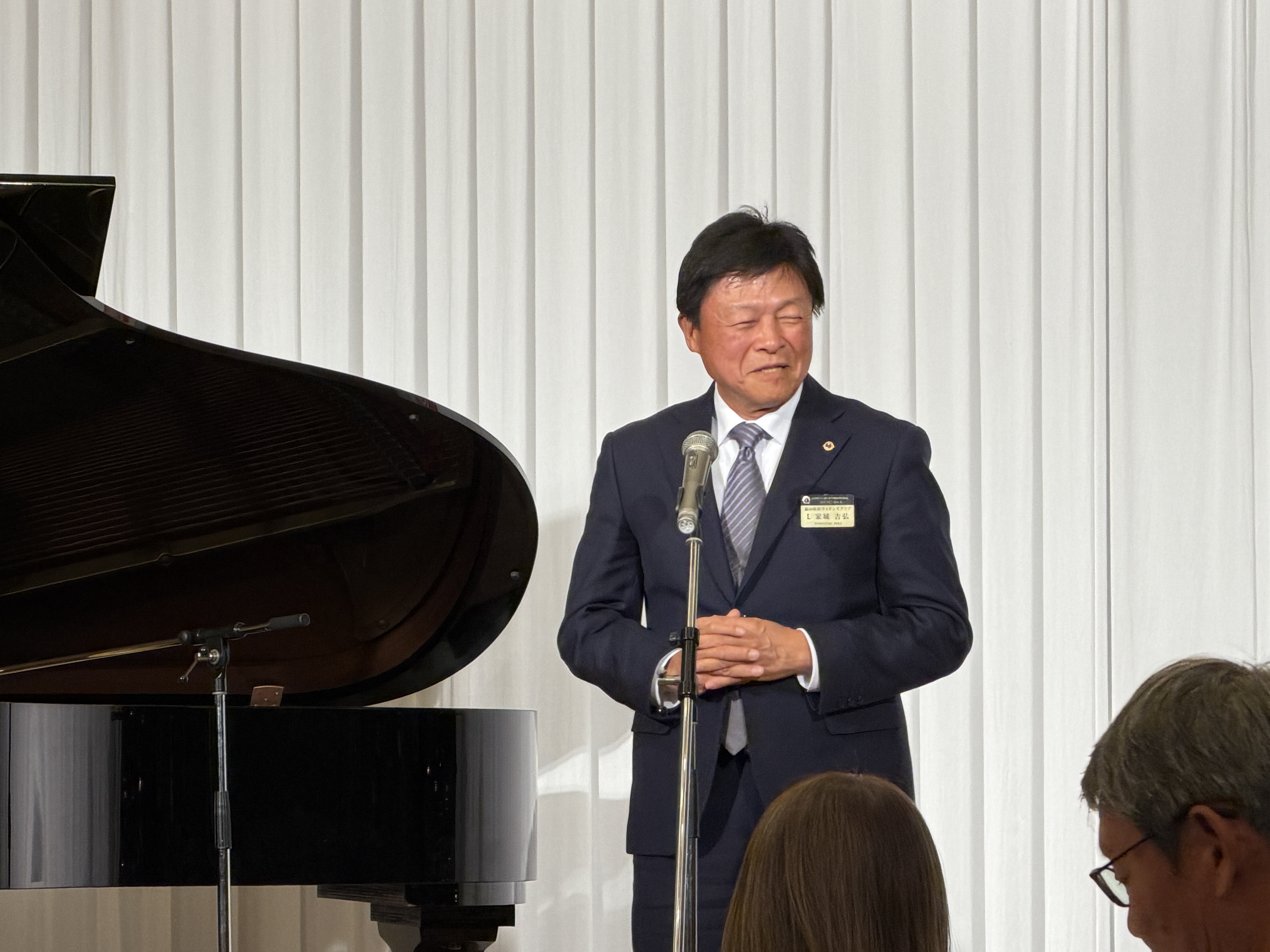 懇親会のオープニングにはサプライズで高尾会長のピアノ演奏。そしてアトラクションタイムには、L花方のサックス演奏とL村本のフルート演奏。続いてLL飯倉順子とLL朝日和子には、プロのピアニストの伴奏でジャズやシャンソンの素敵な歌声をご披露頂き、会場は大変盛り上がりました。