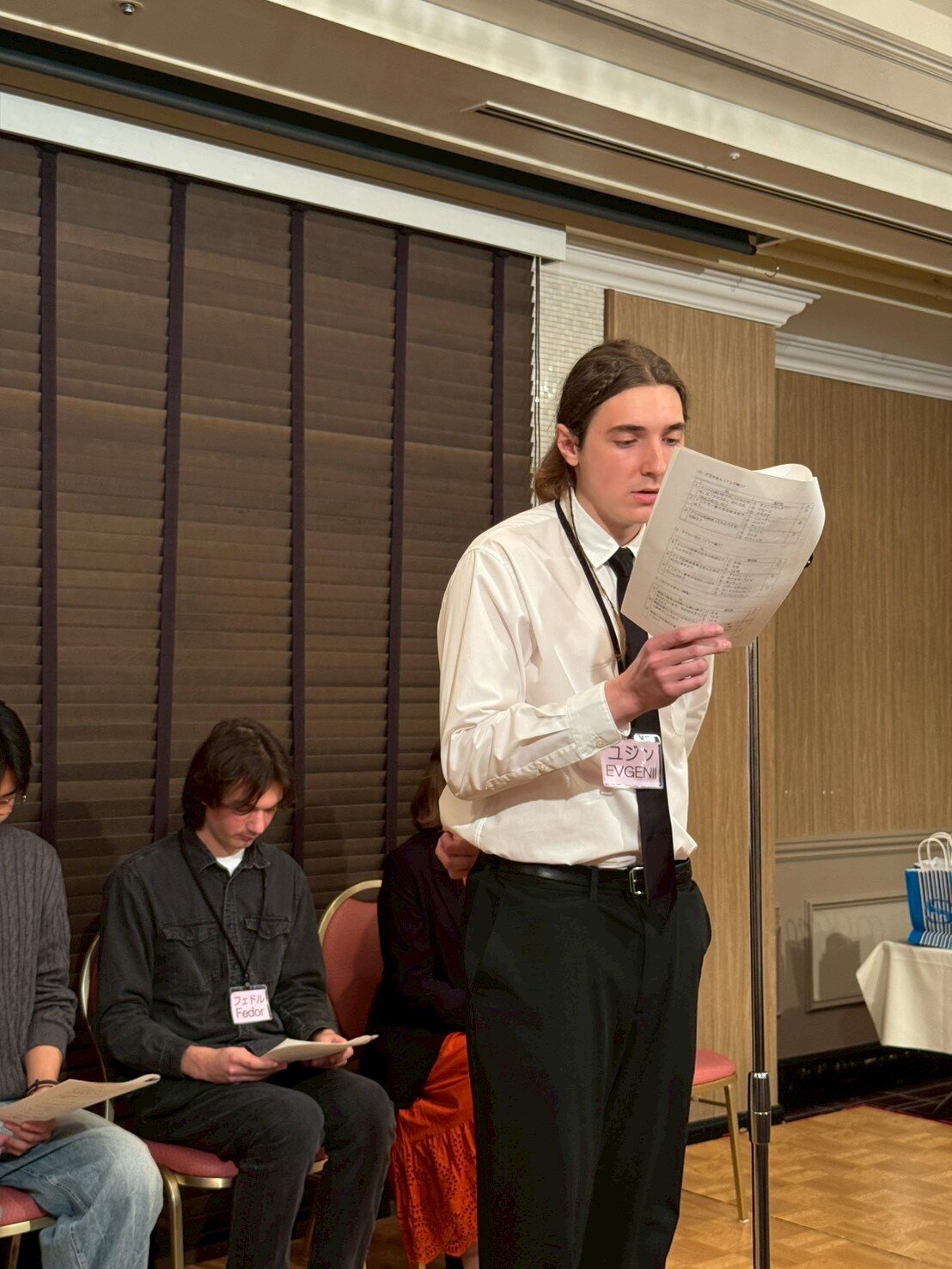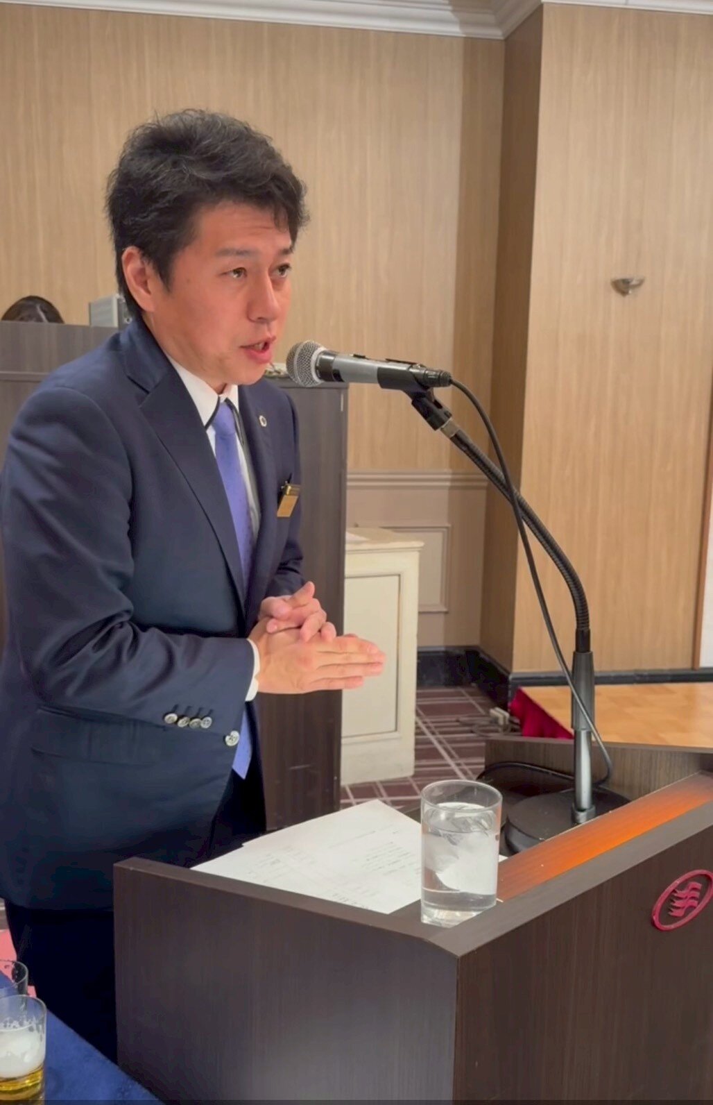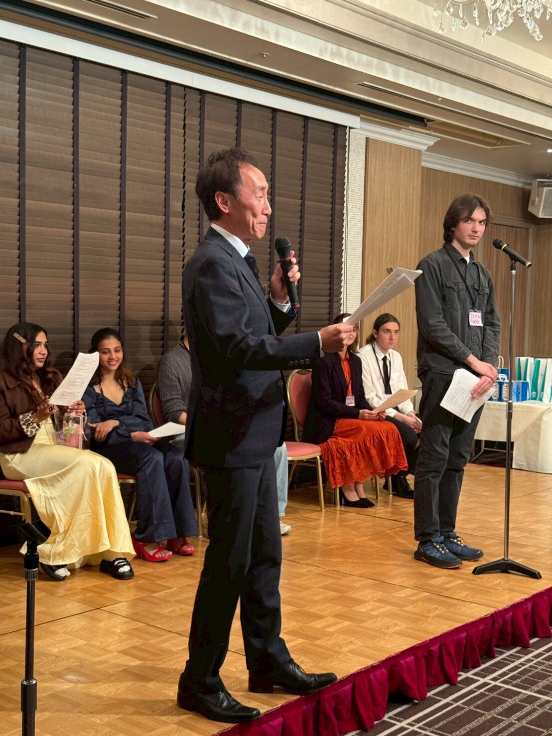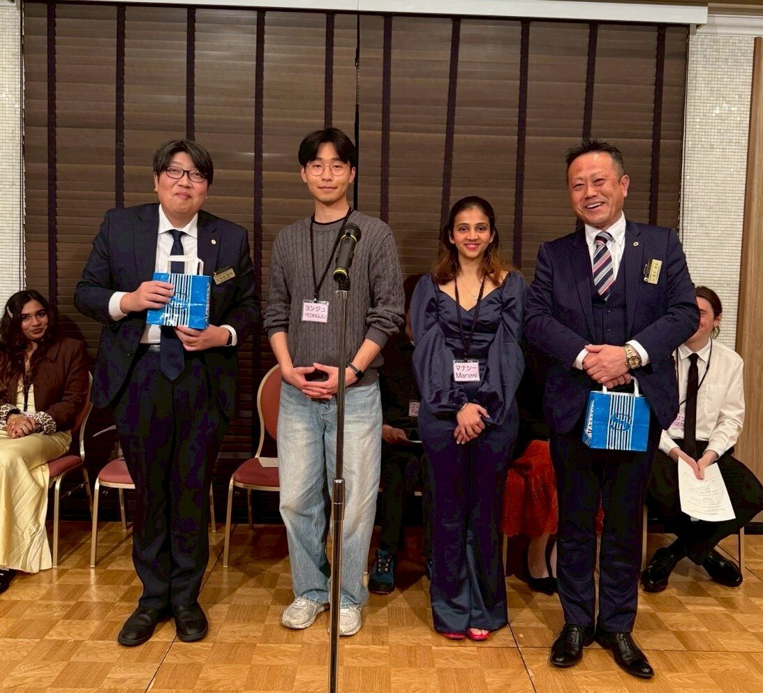 今回の夜例会は、2/10に行われた「英会話ふれあい教室」にご協力頂いた6名の富山大学留学生の方々をご招待して、会場も通常とは違い、ANAクラウンプラザホテルにて行われました。