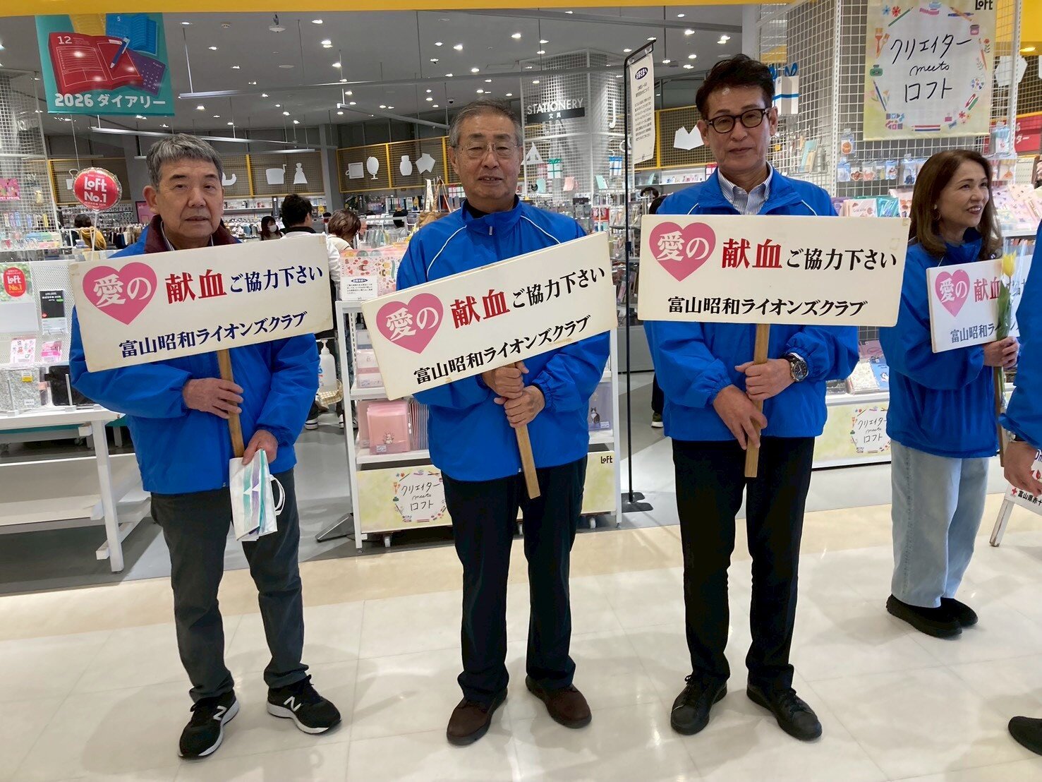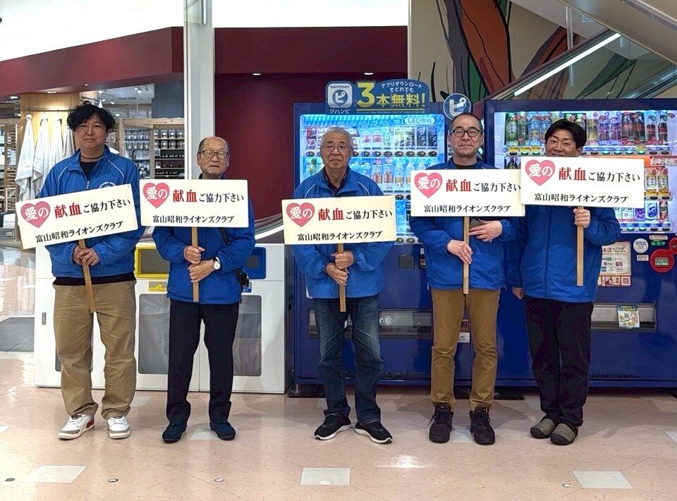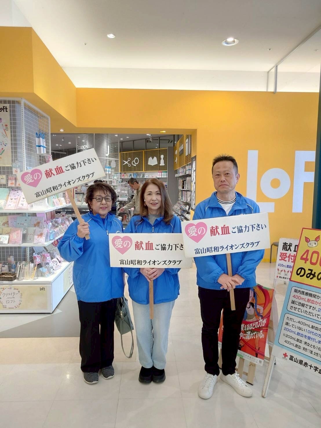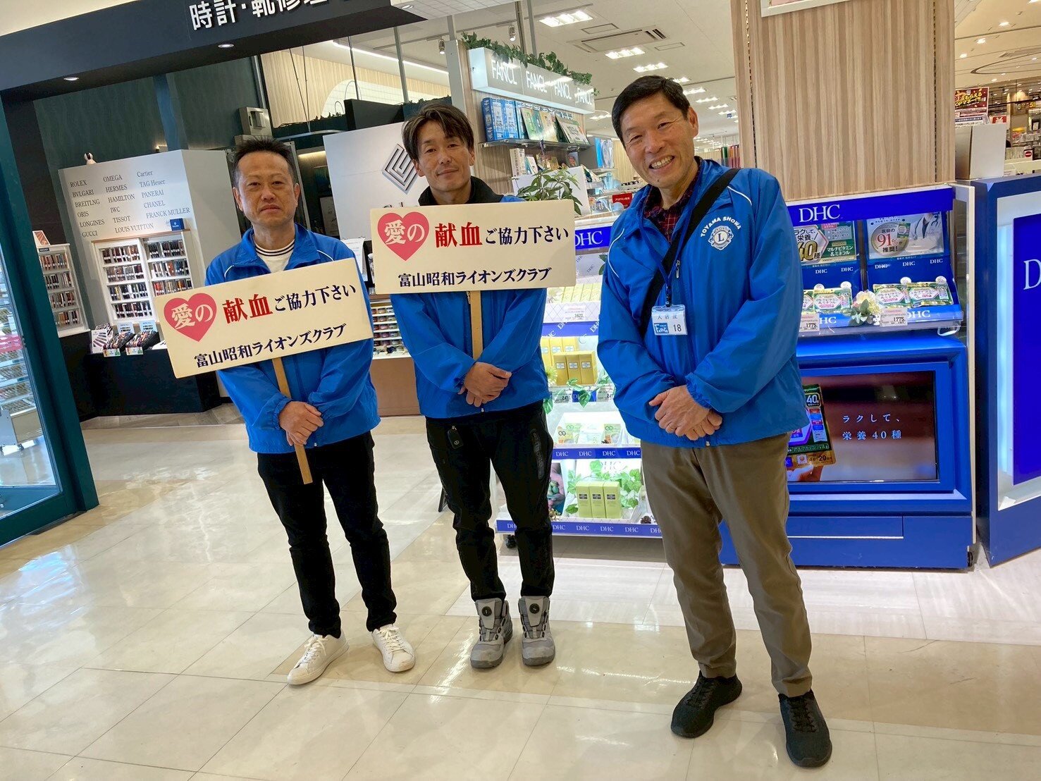今年度2回目の街頭献血運動をファボーレ富山で実施しました。今回も献血運動の看板と共に、骨髄バンクやアイバンクの推進のためののぼり旗も掲げてPRを行いました。当日は37名のメンバーが参加してファボーレ内で献血のPRを行い、内8名のメンバーが自ら献血に協力しました。