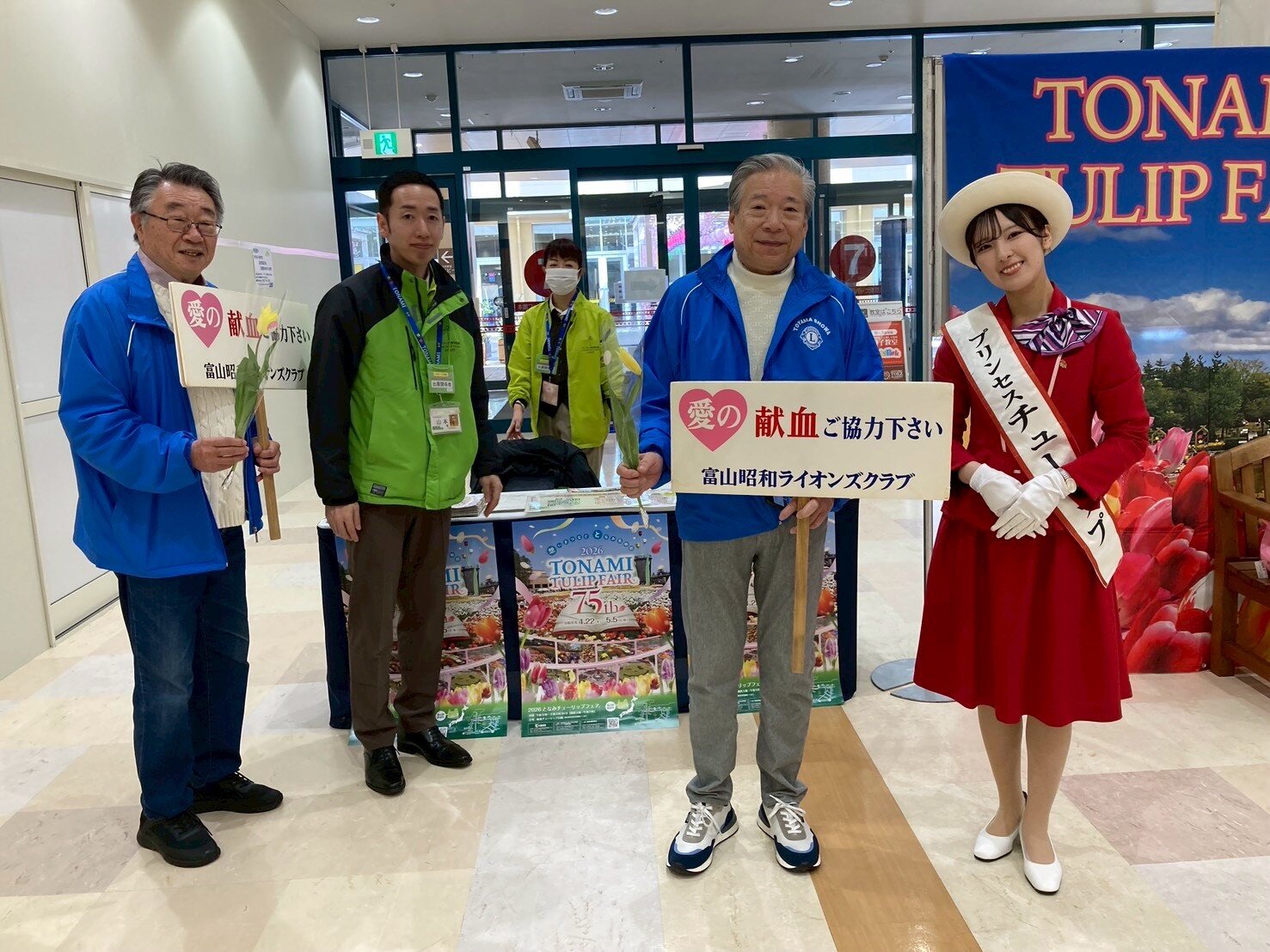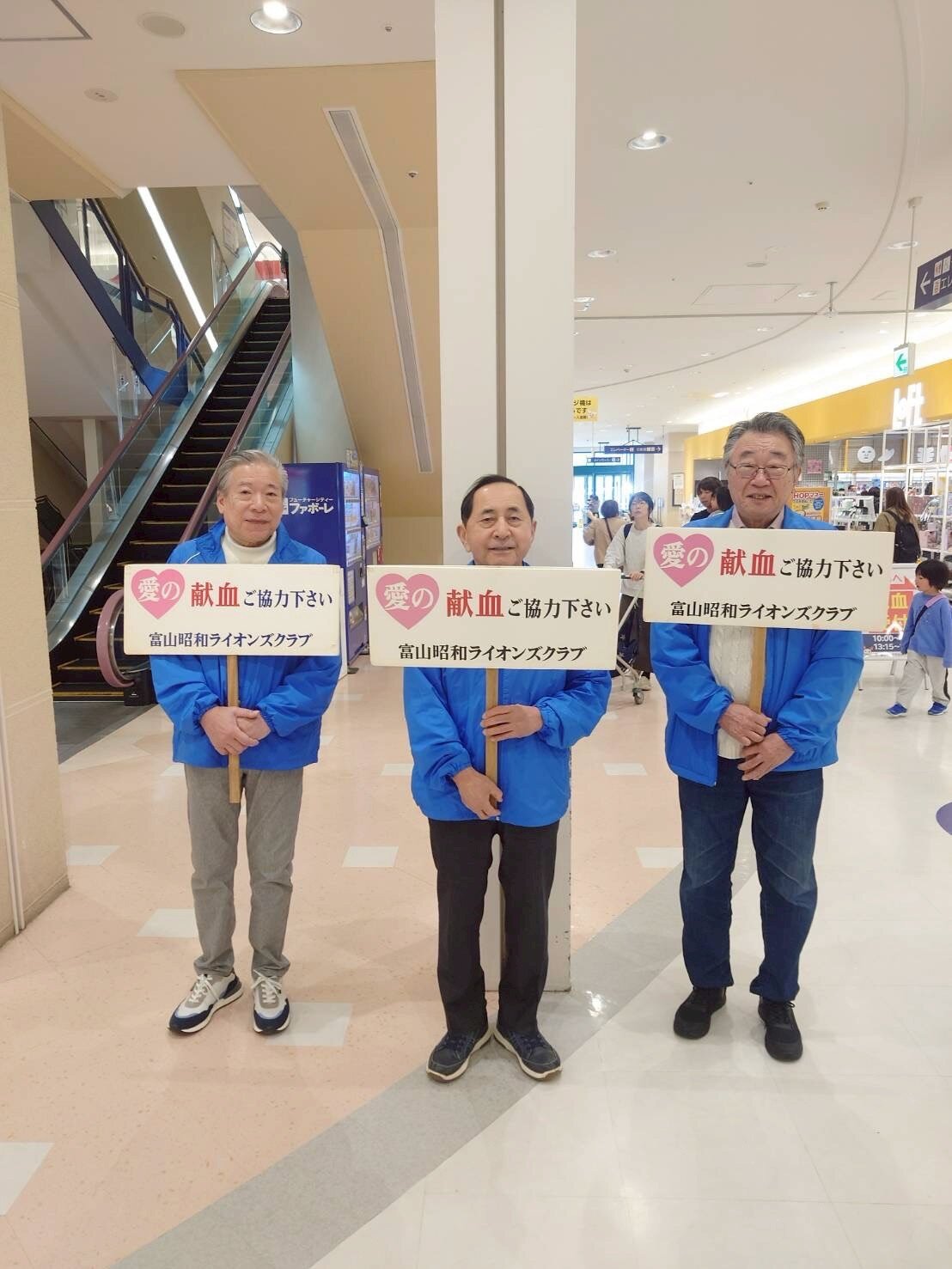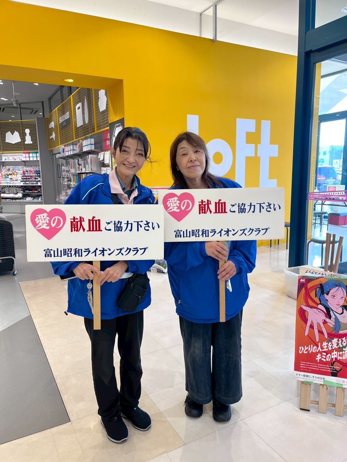 今年度2回目の街頭献血運動をファボーレ富山で実施しました。今回も献血運動の看板と共に、骨髄バンクやアイバンクの推進のためののぼり旗も掲げてPRを行いました。当日は37名のメンバーが参加してファボーレ内で献血のPRを行い、内8名のメンバーが自ら献血に協力しました。